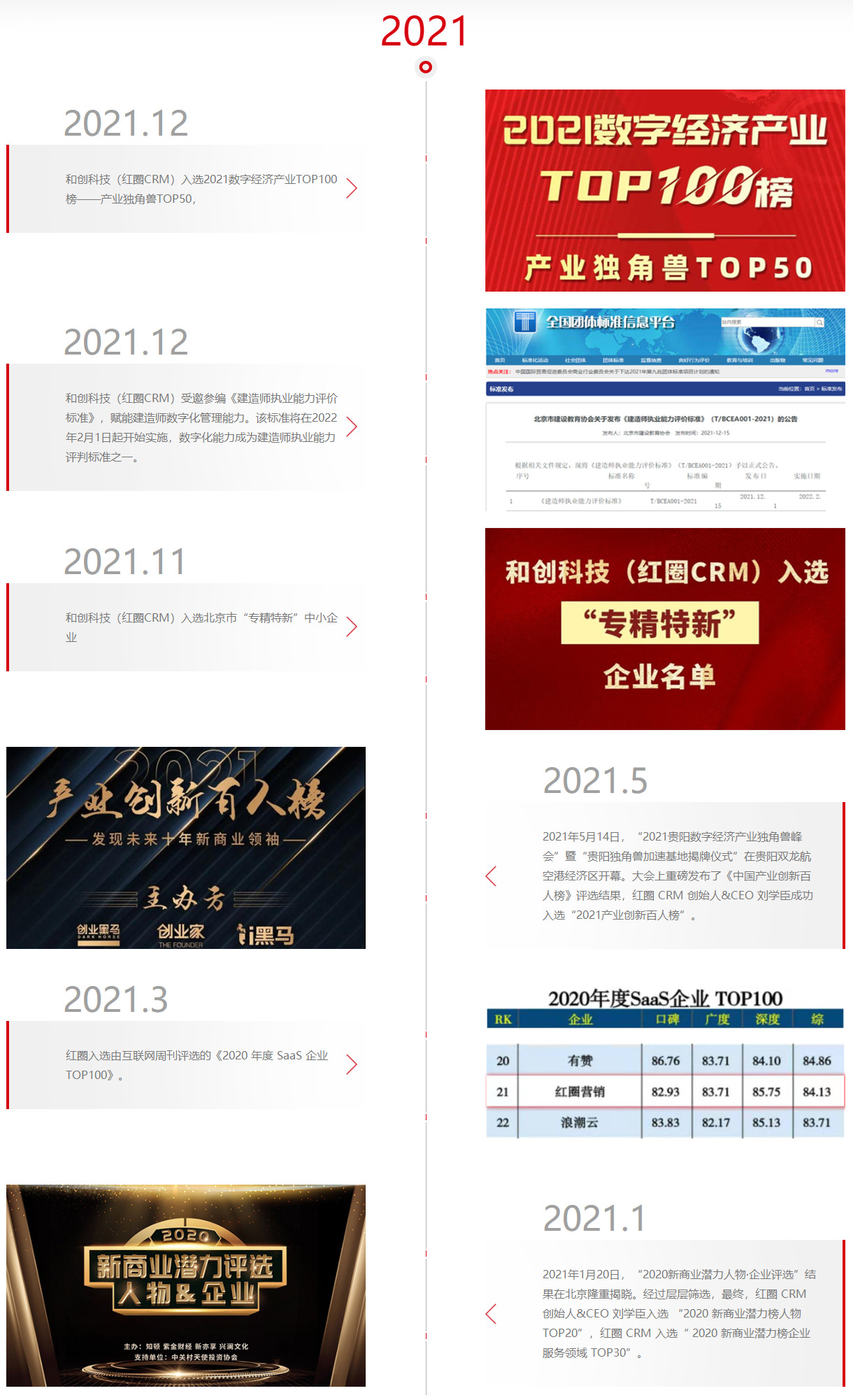 > 資源中心 > 官方博客 > 公司新聞 > 和創科技(紅圈CRM)入選2021數字經濟產業TOP100榜