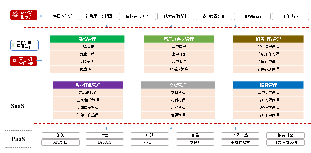 紅圈 CRM+是一款集合了工程項目管理功能和客戶關系管理功能的 SaaS 產品,以自有底層 PaaS 平臺為依托,以業務實踐經驗為指導而構建。產品以助力企業級客戶提效率、降風險、控成本、管過程、增利潤為核心價值,能夠實現在工程項目管理和客戶關系管理領域不同功能模塊的靈活配置,滿足客戶的個性化需求。