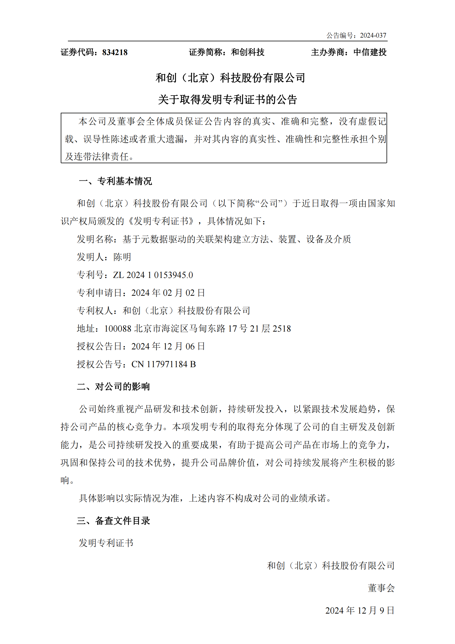 近日,和創科技在科技創新領域再攀新高峰,成功獲得一項名為“基于元數據驅動的關聯架構建立方法、裝置、設備及介質”的新專利。這項專利的取得彰顯了和創科技在技術研發方面的雄厚實力。