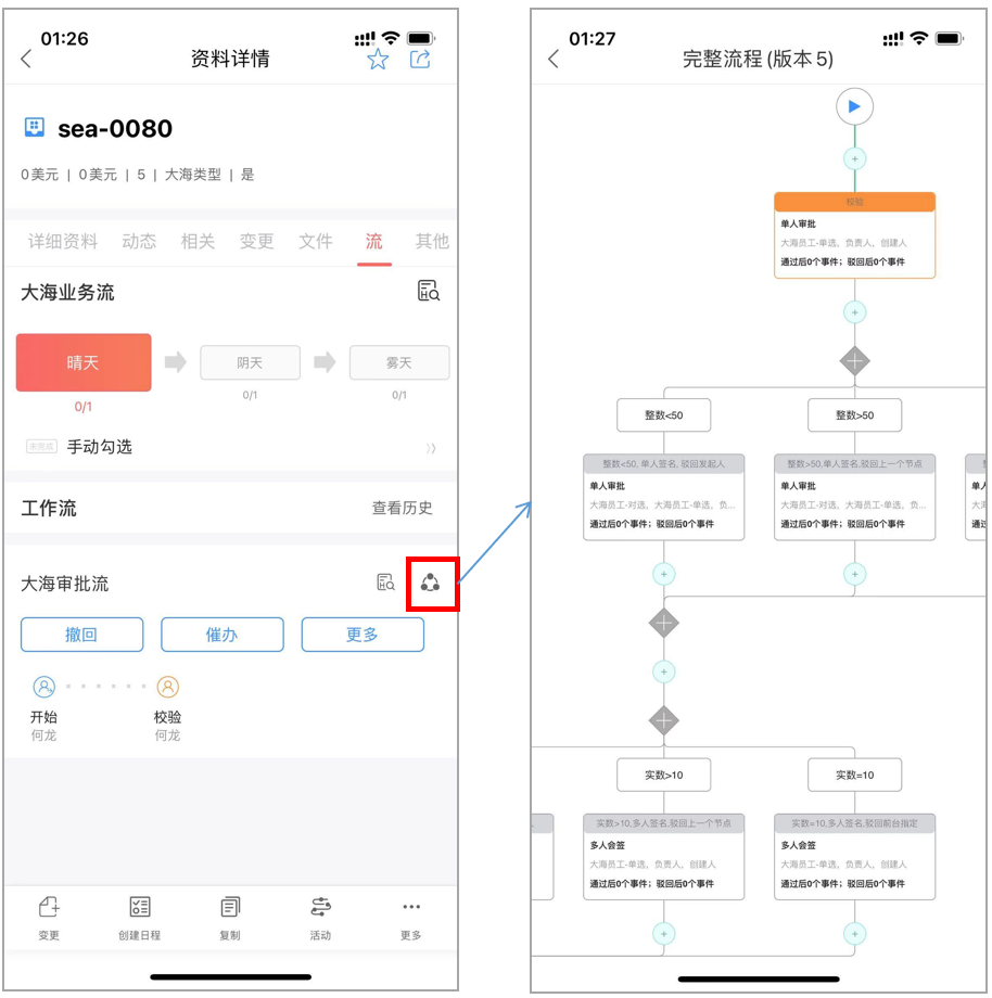 移動端審批流組件中,可以查看全流程,與網頁端一致