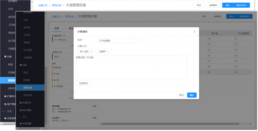 管理總表可在配置時,增加計算指標列,對已有指標進行基本四則運算,提升總表的分析拓展能力