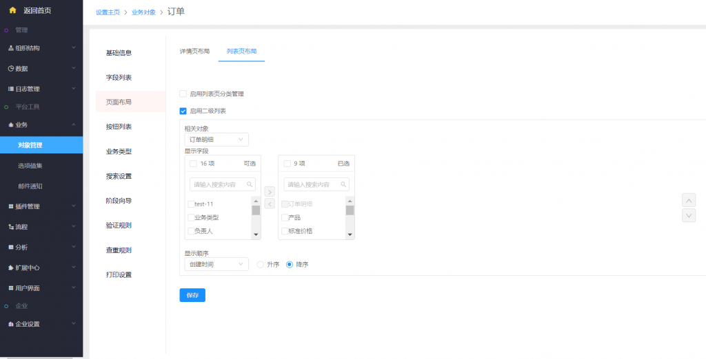 1)對象列表頁可向下展示二級列表,可以列表頁展示下游相關對象