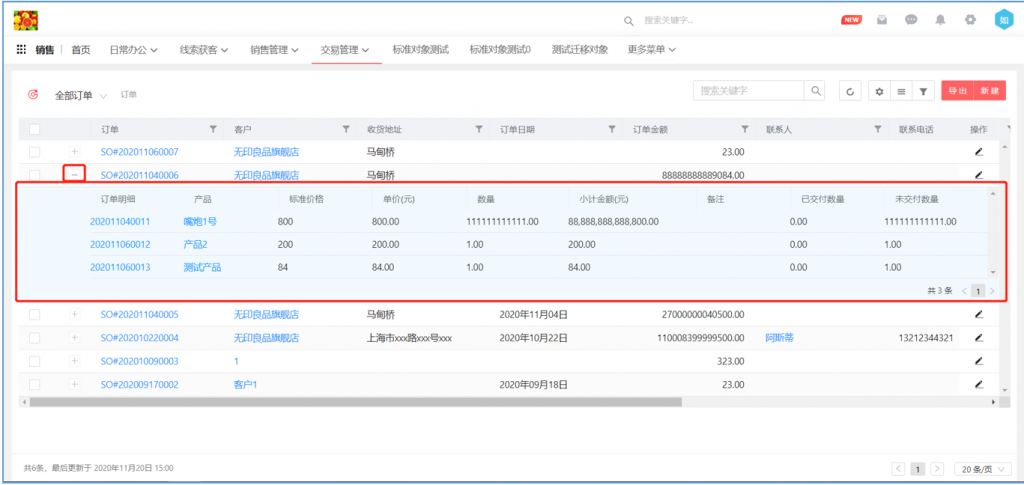 可以在合同列表查看合同的回款情況;可以在訂單列表查看訂單銷售的產品情況