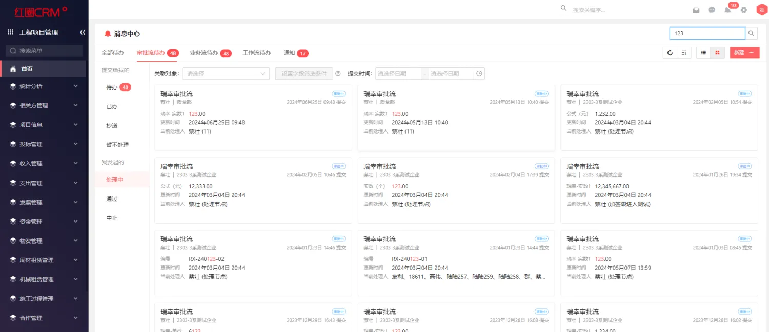 處理中、通過、中止分類卡片列表輸入關(guān)鍵詞可以對條目進行檢索,命中的關(guān)鍵詞
