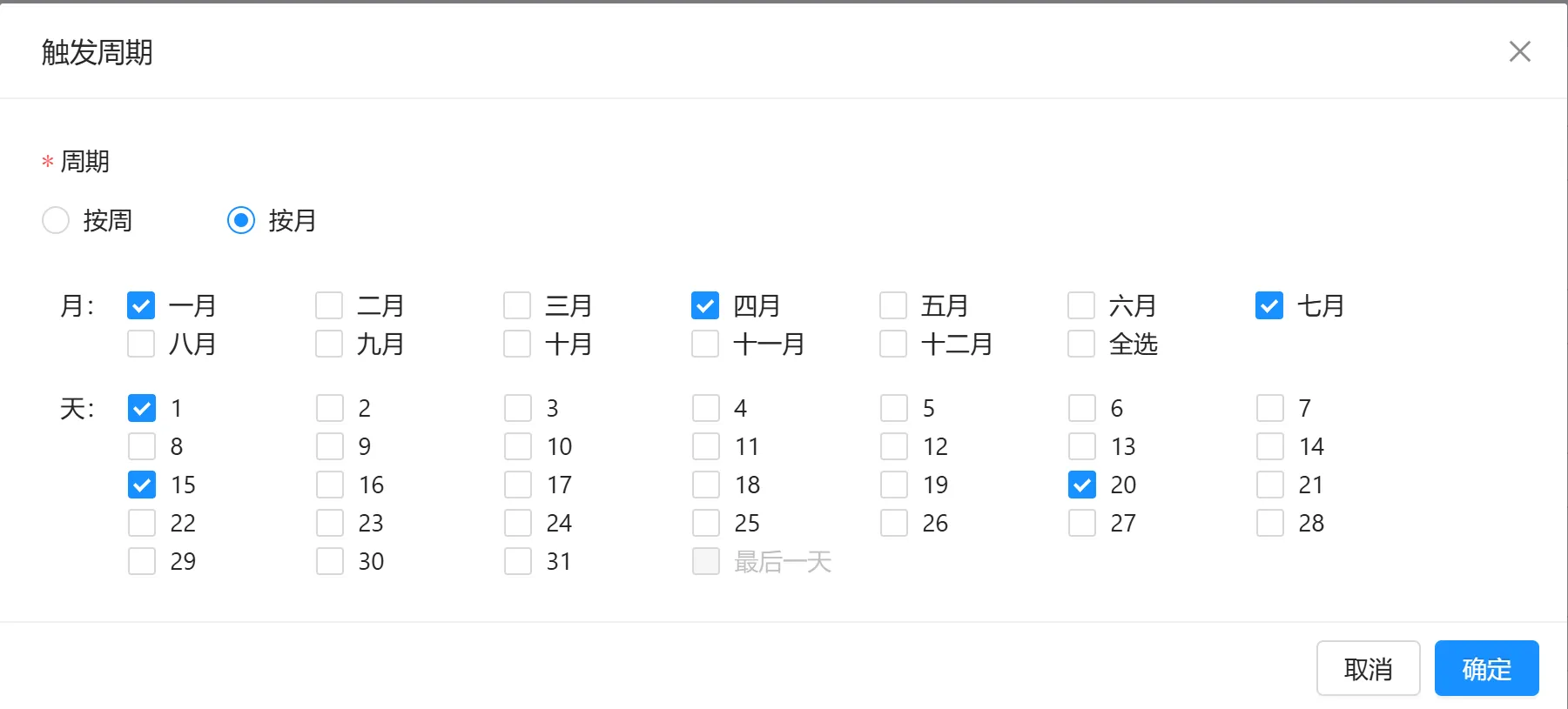 計劃增加自定義觸發(fā)周期,可按周或按月日設(shè)置觸發(fā)頻率,提升計劃任務(wù)的靈活性