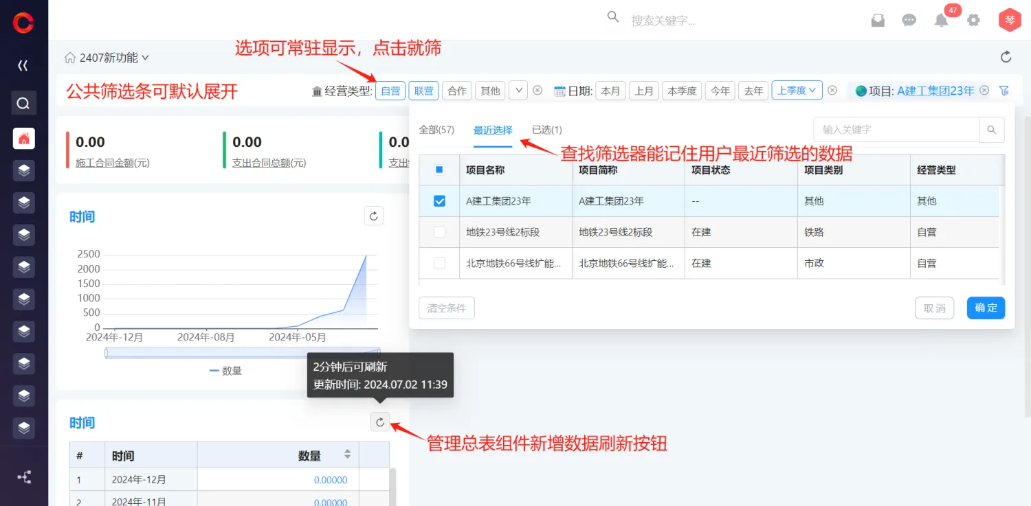 1、管理總表組件可強制刷新數(shù)據(jù),并查看數(shù)據(jù)更新時間