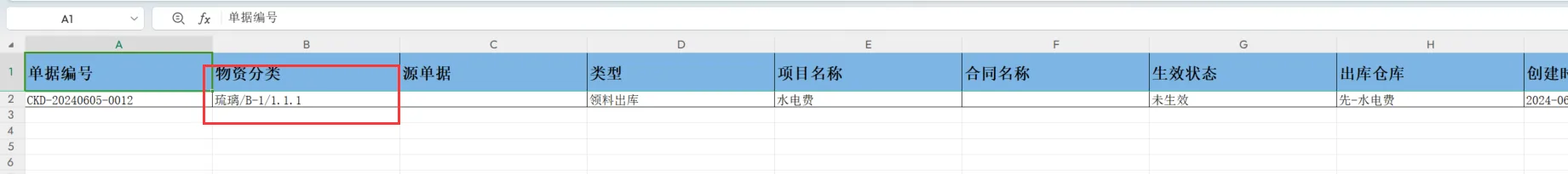 查找關(guān)系字段查找樹形對象或樹形子對象時,如果勾選了顯示完整目錄,導(dǎo)出時也會導(dǎo)出樹形對象的完整路徑,不同層級間用“分隔”,如出庫單查找了物資分類,導(dǎo)出時會將物資分類的父級也同時導(dǎo)出