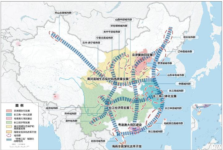 1)優(yōu)化提升京津冀、長三角、珠三角、成渝、長江中游等城市群;