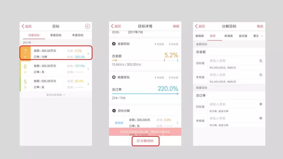 例如,公司2018年要完成3個(gè)億的銷售目標(biāo),那么向下分解,銷售一部需要完成5千萬,銷售一部下面的每個(gè)銷售小組又要分別完成多少業(yè)績目標(biāo),再繼續(xù)往下分到個(gè)人,每個(gè)銷售員又要完成多少目標(biāo)。然后銷售員看自己的基礎(chǔ)數(shù)據(jù),自己的基礎(chǔ)數(shù)據(jù)能否支撐自己完成銷售目標(biāo),若不能,還需要開發(fā)多少數(shù)據(jù)才能實(shí)現(xiàn)目標(biāo)。這就是數(shù)字型的目標(biāo)。