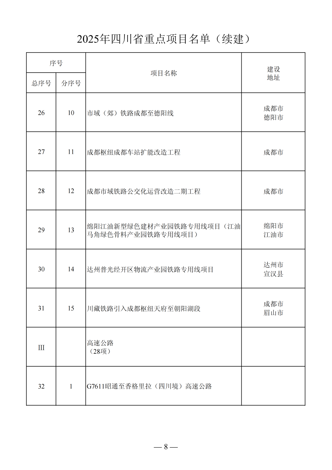 基礎設施項目280個、2025年預計完成投資3483億元。其中,高速公路項目38個、2025年預計完成投資超過1000億元;鐵路項目18個、2025年預計完成投資超過700億元。