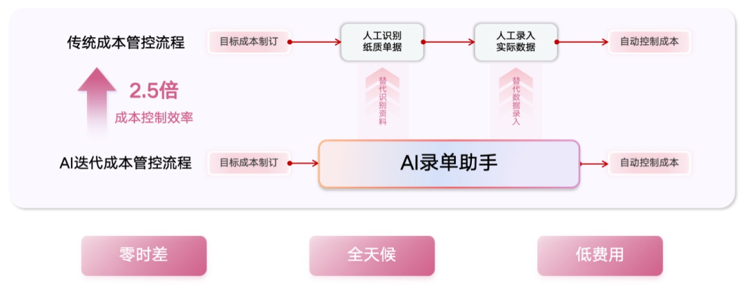 借助AI錄單助手,企業(yè)在保證最低管理成本的同時,建立起穩(wěn)健的成本鏈條,實現(xiàn)高效的成本管理與項目推進,不僅能夠提升數(shù)據(jù)質(zhì)量,也能極大提升員工的工作效率與幸福度。