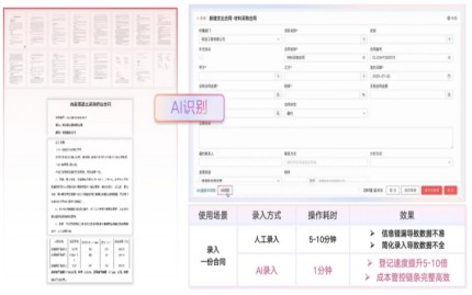 紅圈AI正在重新定義工程企業的業務流程執行方式。傳統模式下,大量業務操作依賴人工處理:成本專員需要手動處理合同文本,逐頁閱讀紙質/電子合同并提取關鍵信息;施工班組每月提交的紙質結算單需要人工錄入系統;材料管理人員需要每天處理數千種材料的出入庫數據。這些重復性工作不僅效率低下,還容易出錯。紅圈AI的AI錄單助手功能通過自動識別各類業務單據,實現從圖像識別到系統錄入的秒級閉環,減少90%的人工操作。